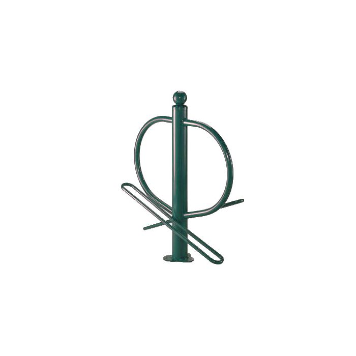 Para una mayor durabilidad y resistencia a la intemperie, el aparcabicis ha sido sometido a un proceso de galvanizado y posterior pintado en polvo epoxi en un atractivo tono verde (Color RAL 6005). Este recubrimiento no solo protege el acero contra la corrosión, sino que también proporciona un aspecto estético agradable y se integra armónicamente en diversos entornos.