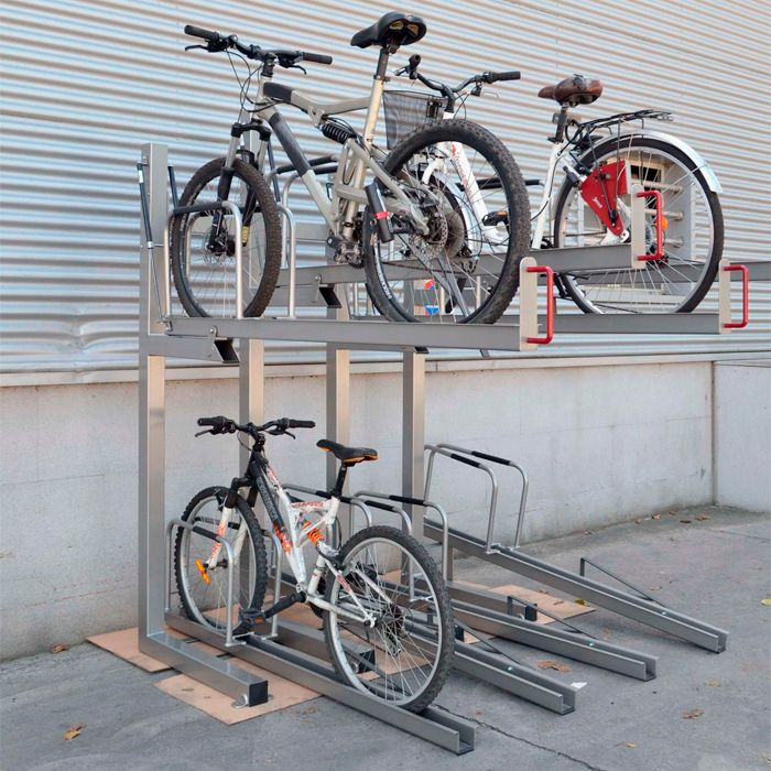 El aparcabicicletas 8 plazas Density es un sistema de estacionamiento de dos alturas que optimiza el espacio de forma eficiente. Dispone de un mecanismo de elevación neumático en el carril superior que permite realizar un menor esfuerzo para aparcar la bicicleta. Este aparcamiento es ideal para áreas de alta densidad como estaciones, centros comerciales, colegios, parkings privados y oficinas.