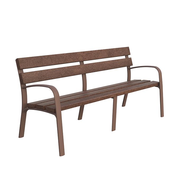 El banco urbano Elix de plástico reciclado es una opción sostenible y duradera para equipar espacios públicos. Su diseño combina 5 listones de polímero reciclado mixto, procedente de residuos domésticos post-consumo y recuperado de sectores industriales y agrícolas, con patas de termoplástico inyectado a presión, también con material reciclado.