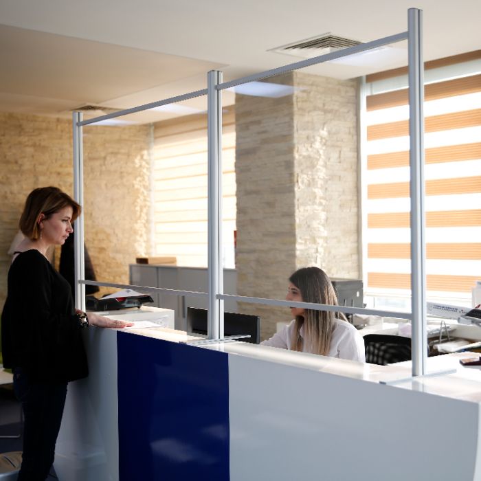 Ideal para oficinas, recepciones, comercios, y cualquier área que requiera separación física sin perder la interacción visual.