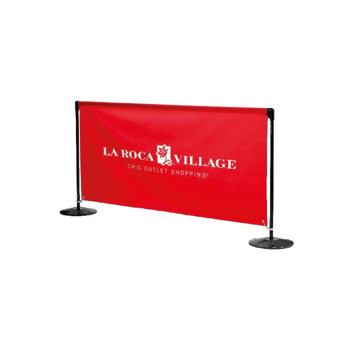 Con la barrera con pancarta publicitaria puede separar zonas de recepción a su medida y crear líneas rectas, añadiendo otros visuales posteriores al modelo inicial. Posibilidad de hacer ángulos, consúltenos.