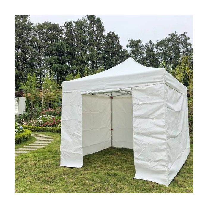 La carpa plegable Alfa completa 3 x 3 m blanca es una solución profesional diseñada para crear espacios cubiertos y cerrados en eventos, ferias, mercados o zonas de atención al público.