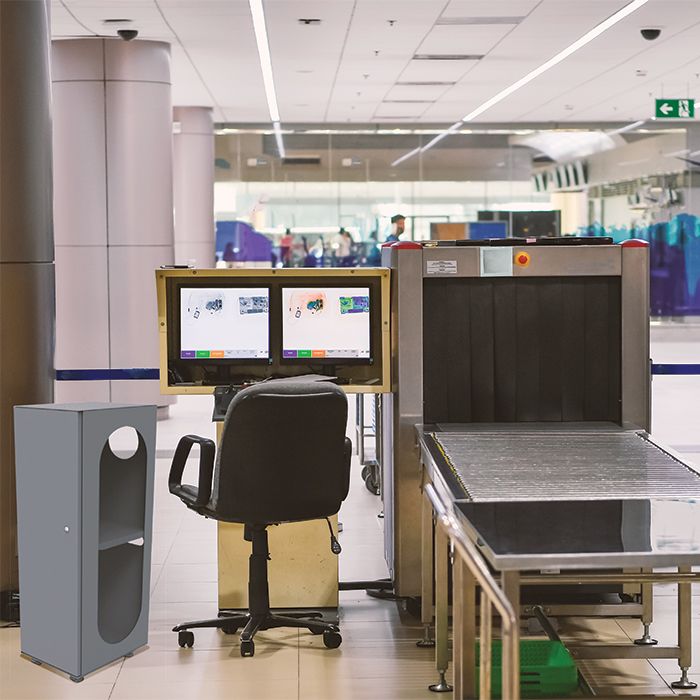 Con dimensiones de 40 cm de ancho x 30 cm de profundidad x 100 cm de altura, este depósito es suficientemente compacto para no obstruir el paso, pero amplio para almacenar una cantidad significativa de objetos. Es la elección perfecta para aeropuertos, estaciones de tren y cualquier instalación que requiera una solución efectiva para manejar y exhibir objetos prohibidos con el máximo nivel de seguridad.
