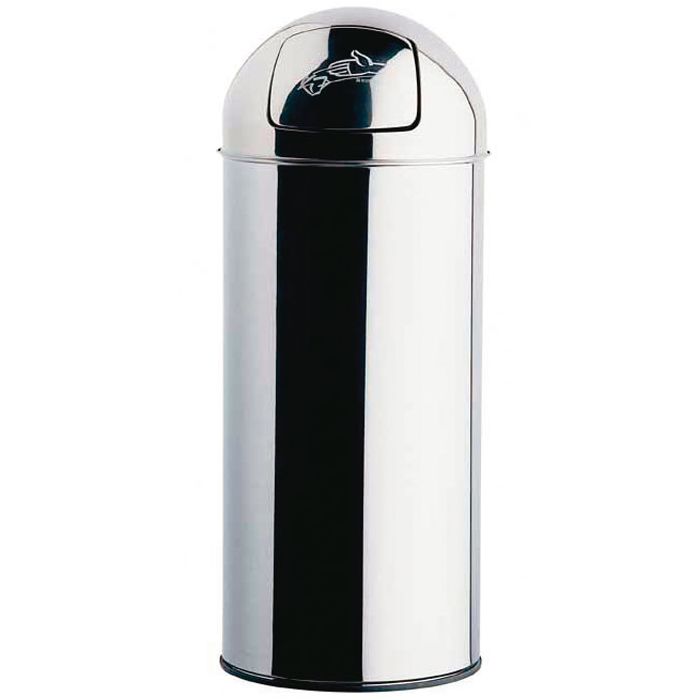 La elegante papelera de interior con tapa abatible Push de 45 litros, tiene el cuerpo en acero pintado exposi o en acero inoxidable y es ideal para espacios de oficinas y despachos.