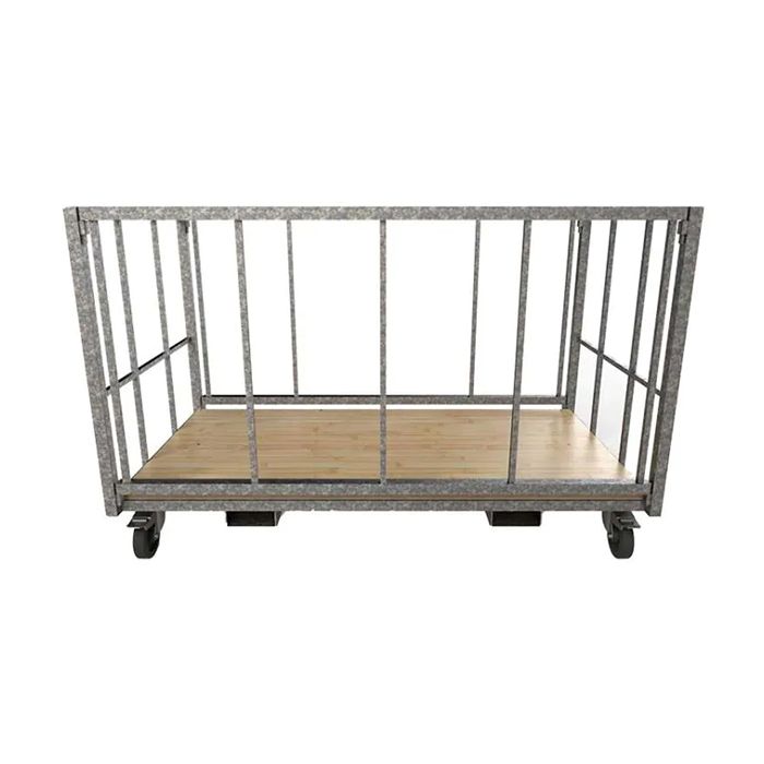 Los raíles situados en la parte inferior permiten que el carro sea manipulado con una carretilla elevadora, facilitando las operaciones de carga y descarga.