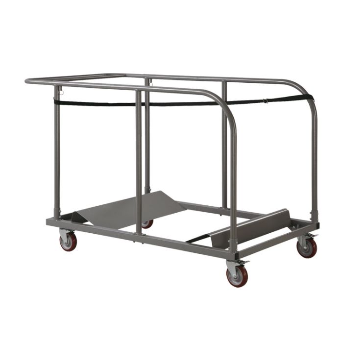 Este carro de transporte está fabricado en acero pintado por pulverización. Apto para estas las mesas planet de 120, 150 y 180 Ø. Peso máximo recomendado: 315 kg. Tiene 4 ruedas de poliuretano con freno incorporado y una correa de poliéster con tensor para mantener las mesas verticales si el carro está a media carga. Amplia plataforma de apoyo. Carros disponibles para 12 mesas.