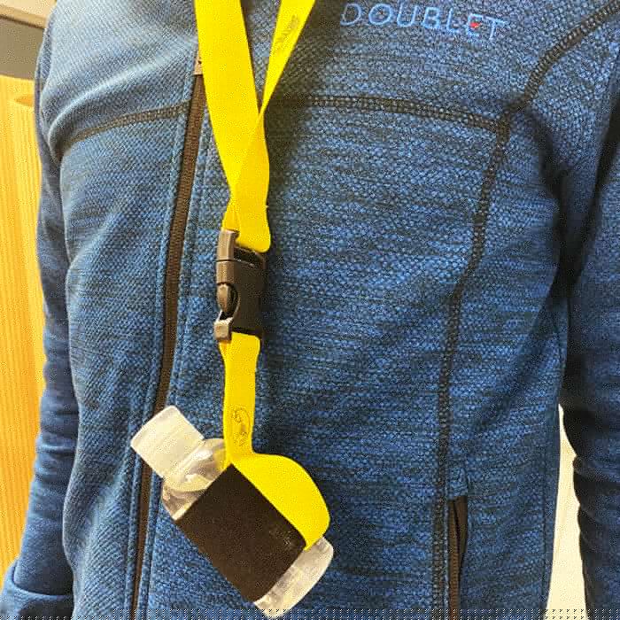 El lanyard con goma elástica es la solución perfecta para mantener las manos limpias durante la actual pandemia. El producto tiene como terminación una goma elástica que puede aguantar una pequeña botella de desinfectante (no incluida - el soporte permite un diámetro de la botella de hasta 5 cm) . Gacias a ello, siempre podrás llevar el desifectante allá donde vaya.