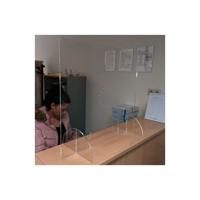 Fabricada en plexiglás fundido, esta protección para mostrador está diseñada para todas las áreas de recepción pública y/o espacios abiertos. La mampara móvil, se puede colocar en mostradores, escritorios...