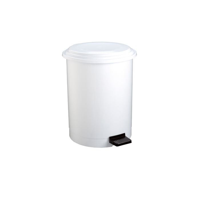 Papelera con pedal económica de polipropileno de alta densidad, blanca, con mecanismo de apertura de plástico, cubo interior de plástico y de una excelente relación calidad/precio.
