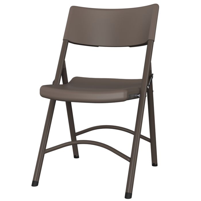 Silla plegable de polietileno de alta densidad y acero pintado por pulverización, indicada para uso frecuente en eventos, catering y todo tipo de celebraciones por estabilidad y su resistencia a los impactos.