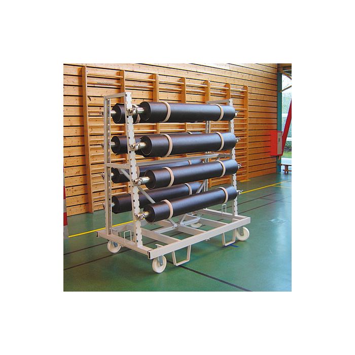 Carro en acero para almacenar y transportar hasta 8 rollos de Proteksol. Medidas: 190 x 112 x 133 o 200 cm. según modelo. Peso vacío: 185 o 199 kg. Suministrado con rollos metálicos.Tornos opcionales.