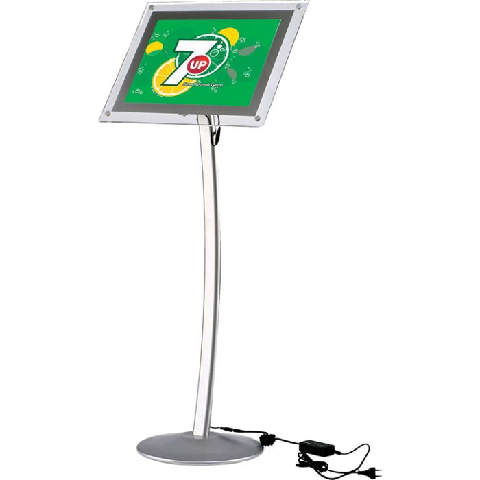 Fomatos disponibles en A4 y A3. La lámina acrílica especialmente tratada y la tecnología LED aseguran una iluminación uniforme. Puede ser utilizado en formato horizontal o vertical. Color plata