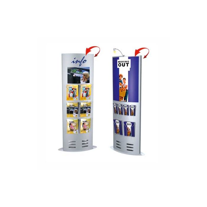 El Tótem portafolletos Column Grande es ideal para presentar la información de forma clara ya que se pueden utilizar los dos lados del tótem para fijar expositores y carteles.