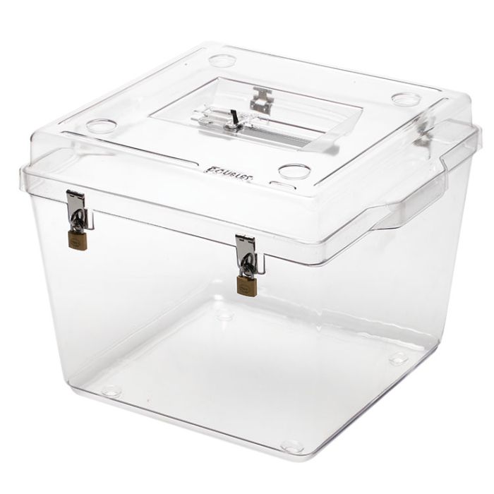 Ligera e irrompible, la urna oficial e irrompible Montesquieu para elecciones está fabricada íntegramente en plexiglás. Sus 6 caras transparentes son incoloras, lo que garantiza una transparencia total de los votos, tanto durante como después de la introducción de la papeleta en la urna.