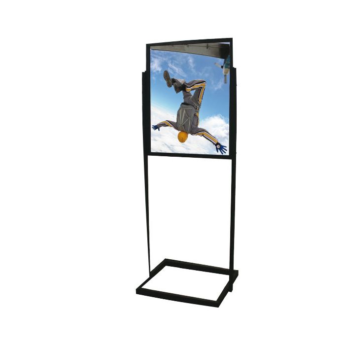 Uso interior. Altura: 1595 mm. Estructura en acero pintado en negro. Lámina de PVC negra opaca para permitir que se vea con claridad a doble cara y evitar la transparencia. Se suministra con dos láminas protectoras transparentes. Kit de montaje rápido.