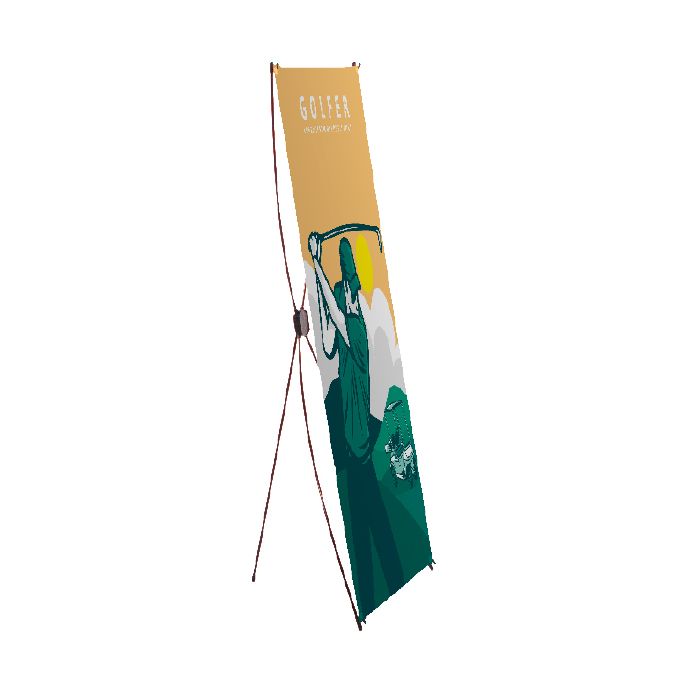 Soporte X-banner de interior plegable con visual intercambiable ideal para promociones y eventos destacando por su facilidad de montaje y transporte. La estructura del roll-up es una combinación de fibra de vidrio y acero negro lo que asegura durabilidad y estabilidad.