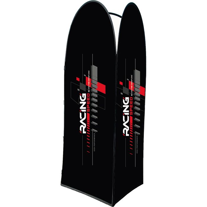 Un tótem de exterior de 3 caras móvil para eventos plegable con estructura en fibra de vidrio y tejido poliéster impreso. Fijación al suelo con piquetas. Bolsa de transporte incluida. Estos precios se entienden con los ficheros facilitados por el cliente listos para impresión.