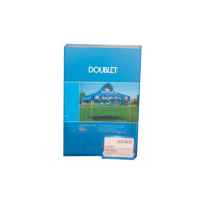 Expositor A4 vertical de metacrilato con tarjetero