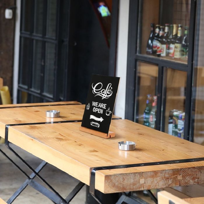 Expositor porta menú de sobremesa fabricado en madera de haya natural, ideal para mostrar menús o una lista de precios por ejemplo en tiendas, restaurantes, cafés o bares.