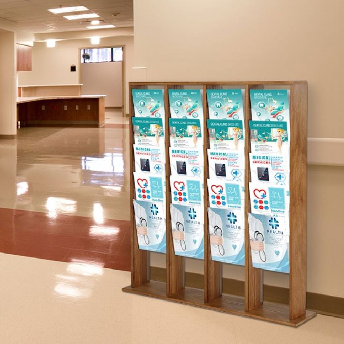 Expositor revistero de pie diseñado para exponer información en un lugar concurrido y están alineados de manera que proporciona mayor área de exposición en oficinas, centros comerciales, bancos, escuelas, hospitales, hoteles, etc.