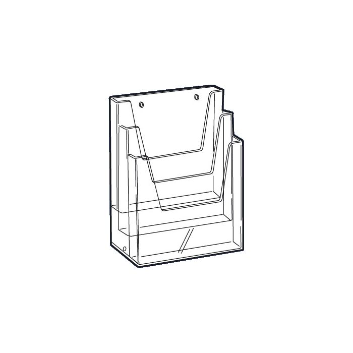 Potencie la presentación de su material informativo con nuestro Expositor de Pared de Tres Niveles, diseñado para captar la atención y mejorar el orden de sus folletos y panfletos de tamaño 1/3 A4 y A5. Su diseño modular no solo embellece cualquier pared, sino que también ofrece la versatilidad de convertirse en un expositor de mostrador, simplemente atornillando su base.