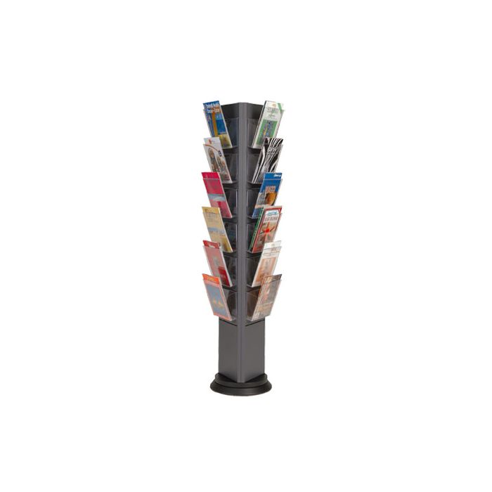 Con una superficie metálica gris elegante y una base de acero robusta, estos portafolletos son un añadido imprescindible para cualquier espacio. Elija entre dos o tres caras de exposición para maximizar su alcance y optimizar el espacio de visualización.