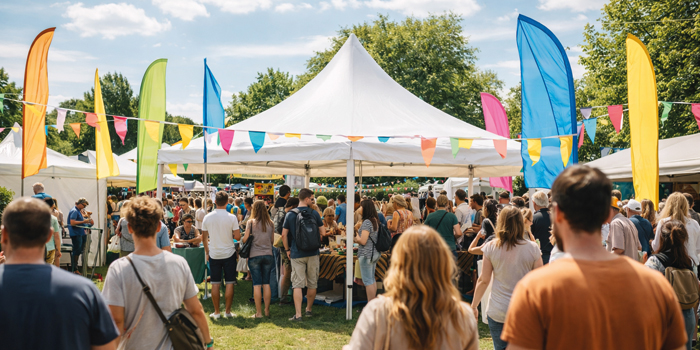 La visibilidad es clave para orientar a los visitantes y destacar tanto el evento como los diferentes puestos.
