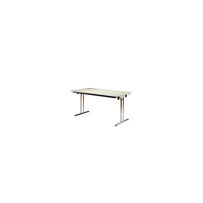 Mesa plegable de estructura robusta y diseño funcional de diversas dimensines, ideal para espacios polivalentes como ferias, congresos, actos institucionales o eventos de empresa.