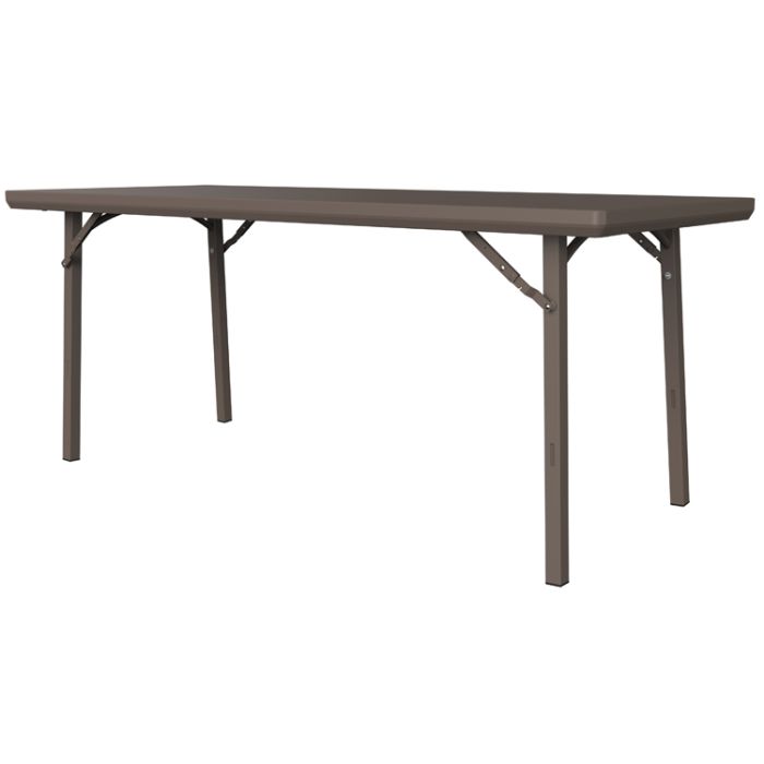 Mesa plegable ligera y resistente a impactos con estructura de acero pintado por pulverización y sobre en Polietileno de alta densidad, ideal para un uso intensivo en el sector de la hostelería o en el educativo por ejemplo.
