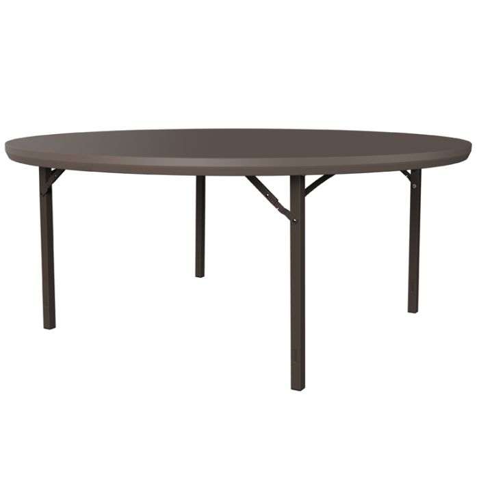 Mesa plegable redonda de 183 cm con una apariencia estética muy cuidada, ligera, resistente a los impactos y estable, tiene una estructura de acero pintado por pulverización y sobre en polietileno de alta densidad.