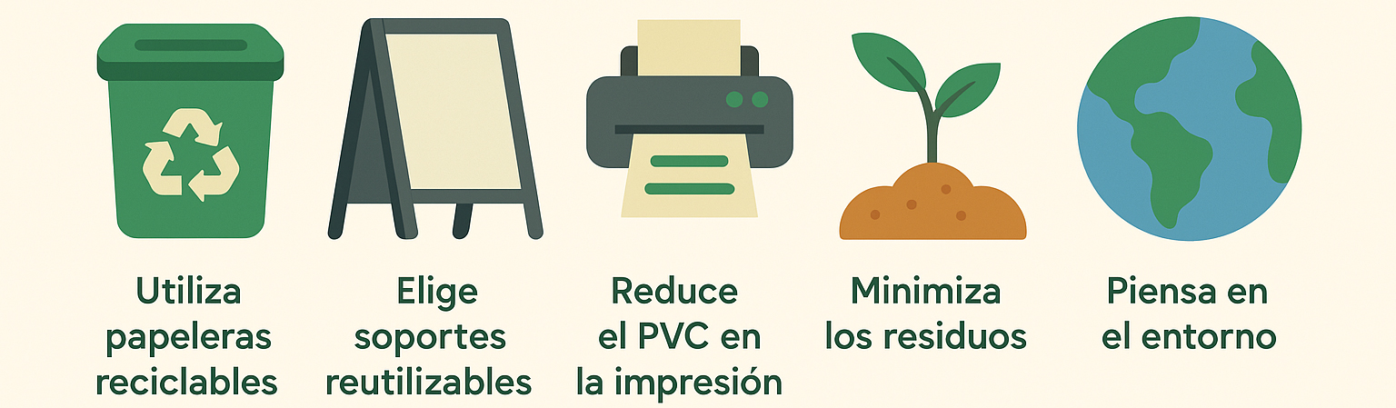 ♻️ Ejemplos: impresión sobre materiales reciclables o reciclados, cartón o soportes sin PVC si es viable.