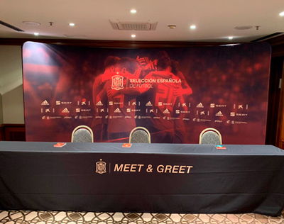 Un elemento complementario de los tótems son los photocalls interiores. Una de las piezas clave en eventos, ferias y presentaciones. Va más allá de ser simplemente un fondo para las fotos, su mayor ventaja es que fomenta la interacción de los asistentes con la marca y entre ellos.