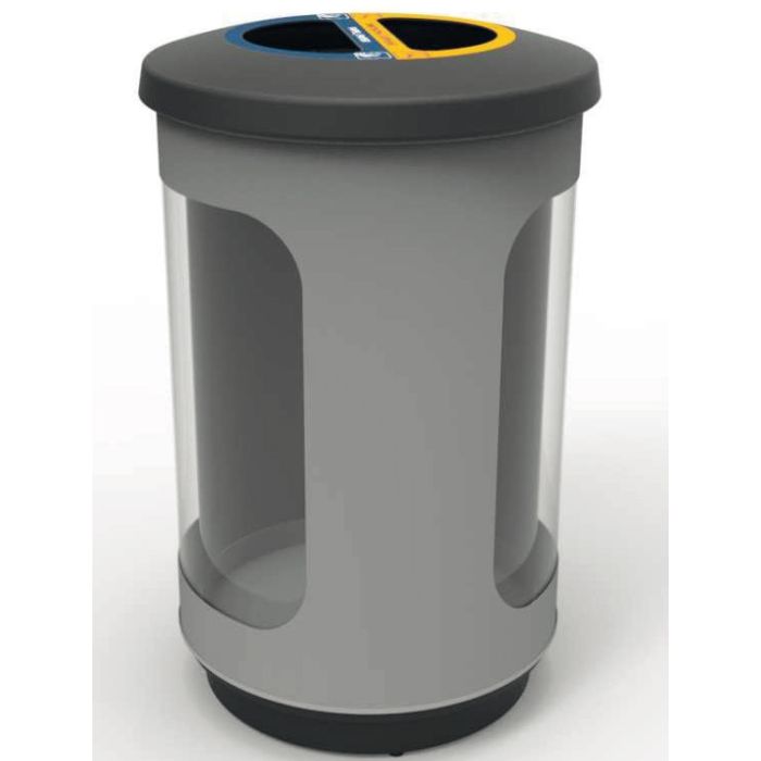 Optimice la gestión de residuos en grandes espacios con nuestra papelera metálica de alta capacidad, diseñada para dos tipos de residuos y con un 70% de visibilidad del contenido interior. Esta papelera metálica es ideal para centros comerciales, aeropuertos y grandes espacios públicos, ofreciendo una solución eficiente y estética para la gestión de residuos, con materiales de alta calidad y diseño pensado para facilitar el reciclaje y mantenimiento.