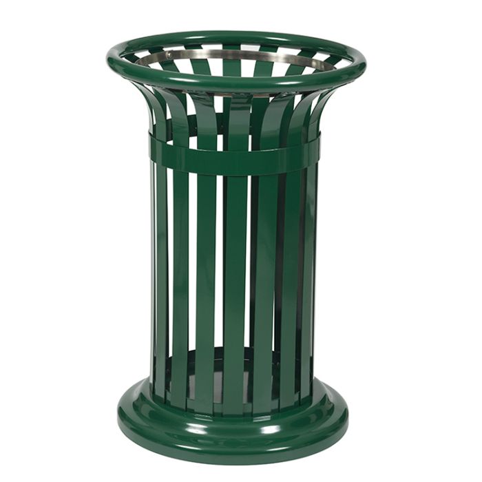 Gama de papeleras de exterior de 35 y 60 litros de capacidad en versión redonda o semicircular, que se pueden fijar al suelo o bien en la pared, idóneas para lugares públicos como calles peatonales o parques.