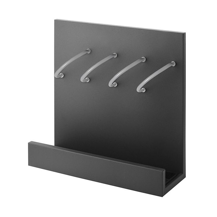 Paragüero mural metálico con 4 soportes para paraguas y recogeaguas inferior integrado. Solución compacta y resistente para mantener entradas limpias y seguras en comercios, oficinas y edificios públicos.