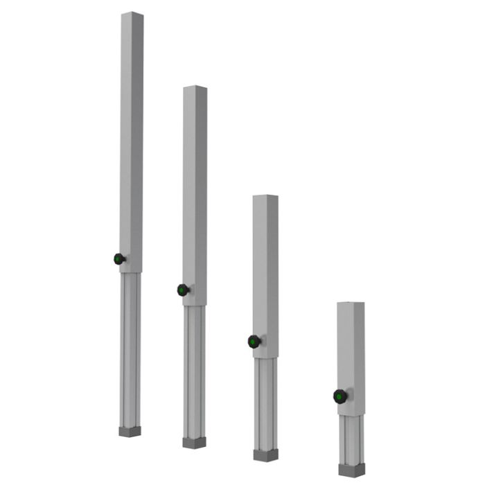 Tornillo con tuerca de bloqueo para sujetar la pata después del posicionamiento escogido. Práctico accesorio que permite una regulación fácil y fluida.