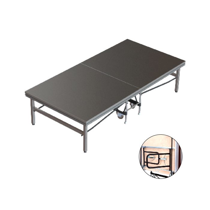 Las plataformas plegables Flash simplifican la instalación de escenarios profesionales al permitir que una sola persona monte y desmonte un escenario en tan solo unos minutos. Su sistema de plegado, inspirado en una mesa de ping-pong, hace que su transporte y almacenamiento sea rápido y práctico. Fabricada con materiales resistentes y un diseño compacto y un sistema de perfil que permite añadir accesorios como pasamanos y escalones. Ideal para eventos profesionales que requieren rapidez y practicidad.