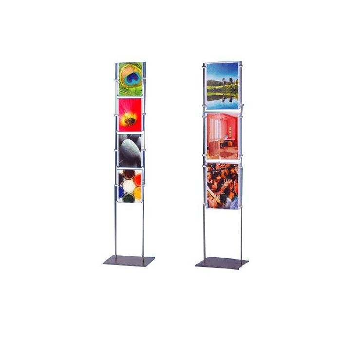 Este portacarteles de pie puede acomodar pósters A4 o A3 vertical u horizontalmente visibles en ambos lados y es muy apreciado en agencias inmobiliarias o agencias de viajes porque los carteles son visibles tanto desde el exterior como desde el interior de la agencia.