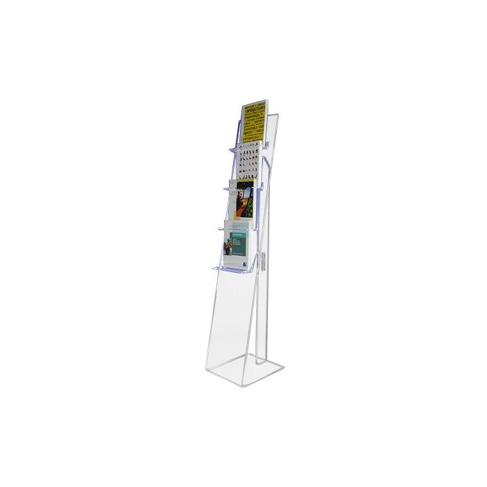 Este portafolletos de metacrilato Scale de 4 departamentos, permite presentar un gran número de catálogos o documentos DIN A4.
