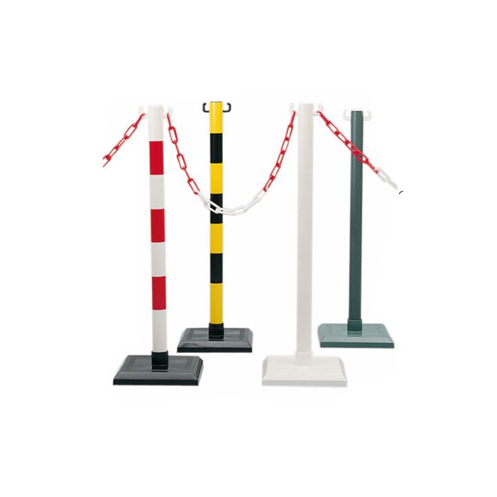 Los postes señalizadores de plástico son económicos y muy estables, con una gran resistencia a los elementos externos. Son el producto ideal para delimitar y señalizar de manera rápida y eficaz. Están equipados con dos ganchos para poder colgar la cadena.