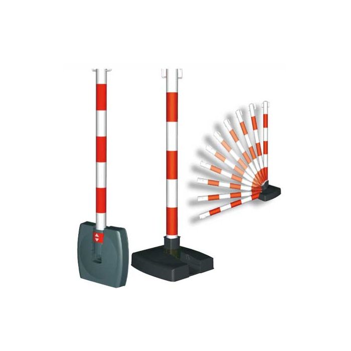 Los postes separadores plegables en PVC tienen un ocurrente sistema abatible que permite un almacenaje funcional con un ahorro de espacio de un 70%.