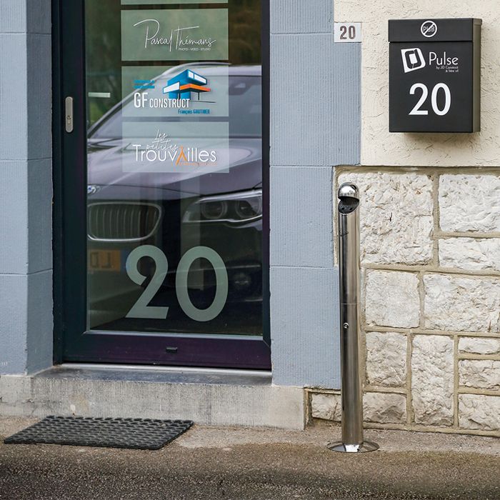 Este cenicero viene listo para usar, con un kit de fijación al suelo y una llave de bloqueo incluidos, permitiendo una instalación rápida y sencilla. La vaciado se realiza a través de una trampa situada a media altura, facilitando el mantenimiento y asegurando que el cenicero se pueda vaciar de manera eficiente y sin complicaciones.