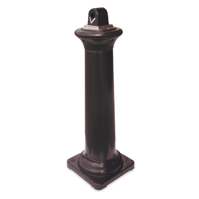 Elegante cenicero de pie para exterior fabricado en polietileno con orificios de fijación al suelo y con una línea estética e innovadora que combina perfectamente con distintos estilos arquitectónicos.