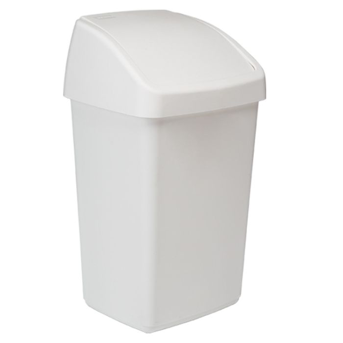 Práctica papelera de tapa basculante con una gran obertura para depositar los desechos de forma limpia y rápida, destinada a todo tipo de usos.