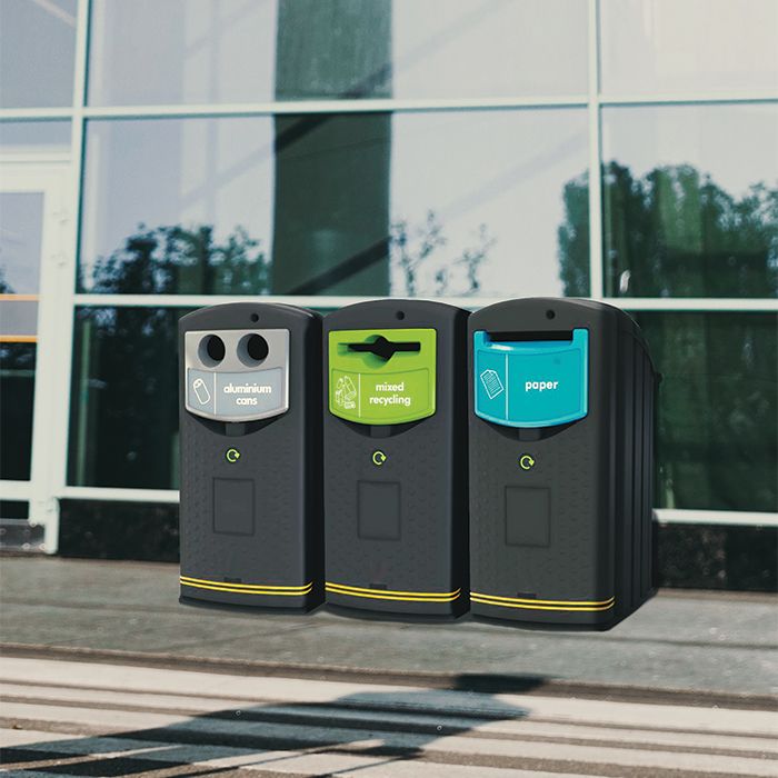 Papeleras de gran capacidad y de alta resistencia para uso interno y externo, con un diseño que permite un fácil vaciado, con la puerta cerrada con 4 puntos fuertes de cierre, ideal para lugares donde hay una gran afluencia de público.