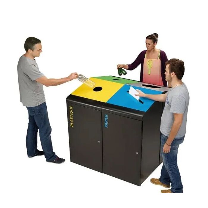 Papeleras de reciclaje de alta resistencia y capacidad, fabricadas en acero con recubrimiento en polvo anti-UV, con un acabado de alta calidad y resistente a la corrosión, ideales para todo tipo de entornos interiores.