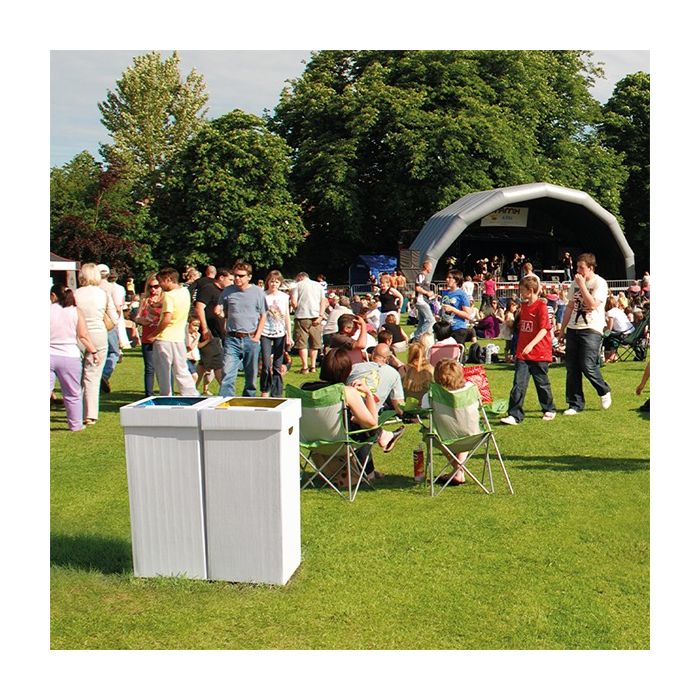 La papelera de cartón Denali de 100 litros está diseñada para crear puntos de reciclaje eficaces en eventos, oficinas, centros educativos y espacios públicos temporales. Su diseño ligero y funcional facilita la organización de islas de residuos de forma rápida y ordenada.
