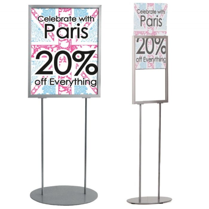 Con su base ovalada estable y elegante, este soporte garantiza una presentación impecable en cualquier entorno. Con una altura de 1525 mm, proporciona una presencia destacada sin abrumar el espacio circundante.