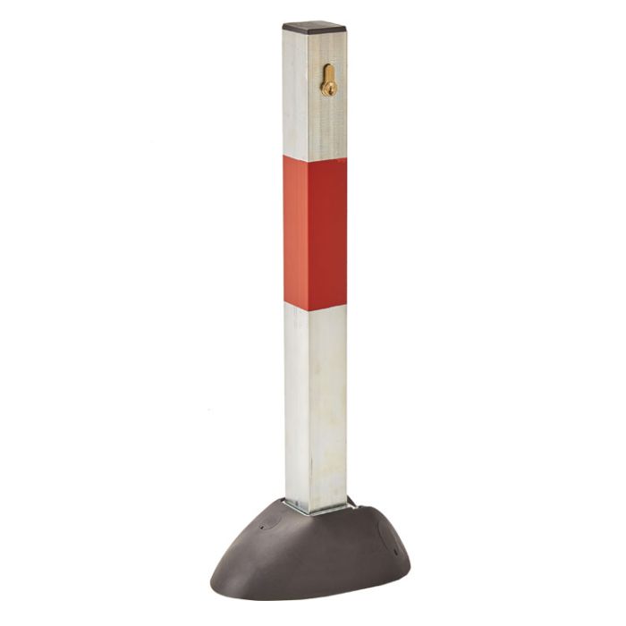El poste de parking abatible es un dispositivo diseñado para delimitar espacios de estacionamiento y controlar el acceso a ellos. Cuenta con una gran base de diseño redondeado que tiene dos funciones fundamentales: proteger los neumáticos de los vehículos y proporcionar una base estable para el poste. Está fabricado en acero y poliamida, lo que garantiza su durabilidad y resistencia. La fijación al suelo se realiza mediante tornillos y tacos, asegurando una sujeción segura.
