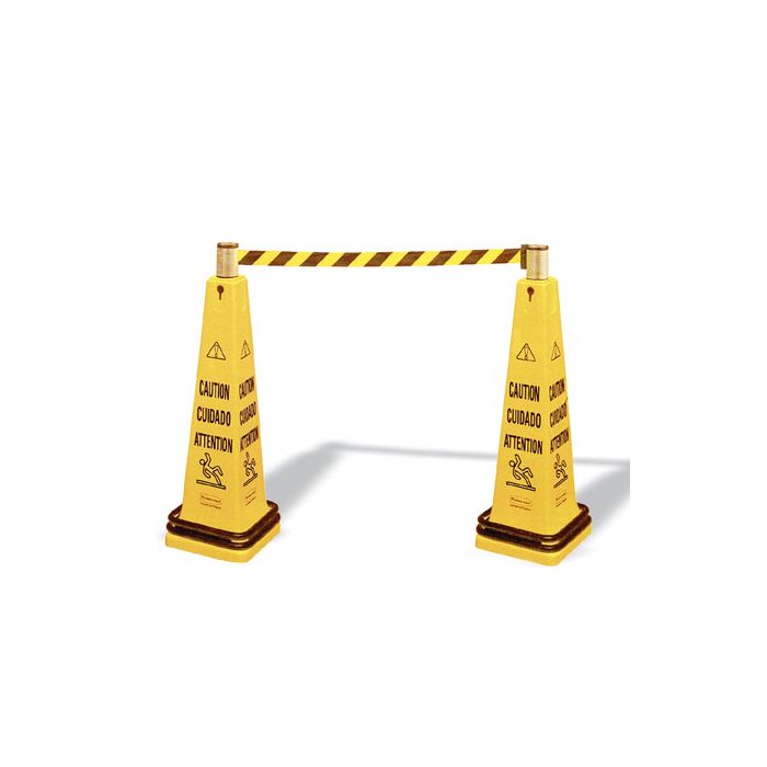 - Cinta retráctil de advertencia: La cinta de advertencia, que conecta los dos conos, puede extenderse hasta 180 cm. Esta cinta tiene un patrón de franjas amarillas y negras, un diseño estándar que es fácilmente reconocible y efectivo para indicar áreas peligrosas o restringidas.